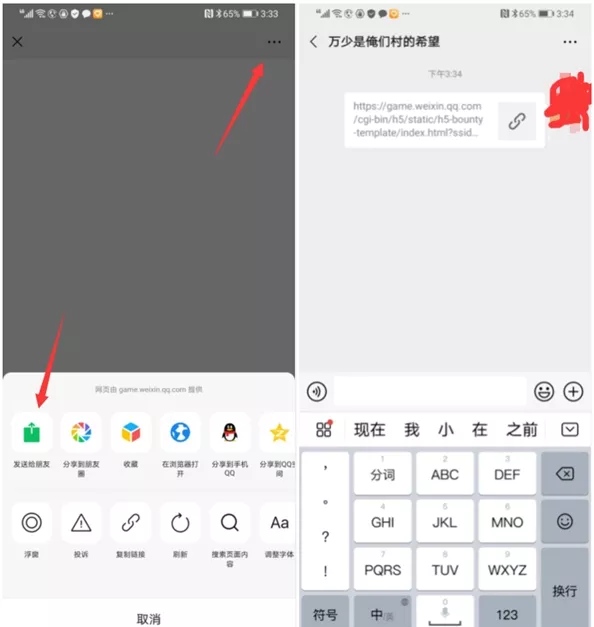 很多小伙伴扫码后是白屏,大家可以在白屏页面的右上角点击 “...” 随便分享给一个好友,然后从聊天页面分享的链接进入就可以啦。