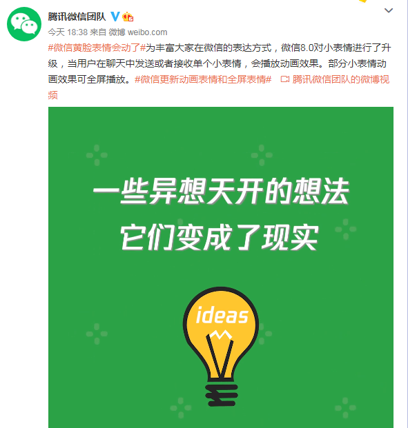 微信又双叒叕更新!能和好友“互扔炸弹”了! 2021年1月22日 11:18:46日常评论1,249 据@腾讯微信团队: 微信8.0发布 微信更新动画表情 当用户在聊天中发送或者接收单个小表情 会播放动画效果 比如 可以和好友互扔炸弹 放满屏的烟花 发庆祝的礼花 黄脸表情也可以动了 网友纷纷发表评论: 有的表示还未收到更新 有的已经玩起来了 还有的大开脑洞 快去看看 安卓微信 8.0 抢先体验内测版地址:点我下载 点赞 登录收藏 /598.html 复制链接 复制链接 我的微信 微信扫一扫 微信小程序 微信扫一扫