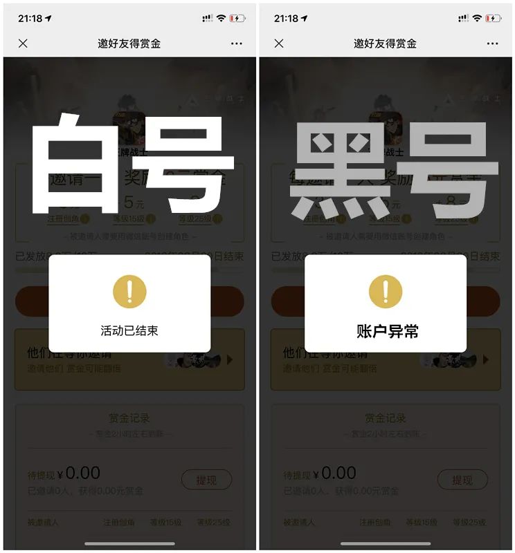 被限制的号不容易中奖,而且中奖了也不推送红包,除了一些不限制号的活动。