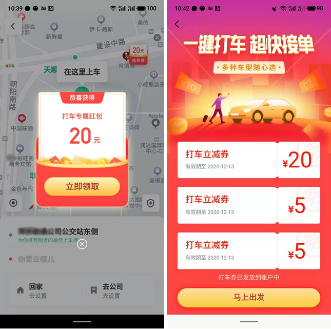 腾讯地图免费领取30元滴滴打车立减券 每日限量 2020年12月12日 18:31:18活动评论9891 腾讯地图免费领取30元滴滴打车立减券 每日限量 腾讯地图APP可以免费领取30元打车立减券 需要的领取一下 分别是20元+5元+5元 三张立减券 共计30元 在腾讯地图上面打车可以使用 叫的车是滴滴出行的车 还是很不错的 经常需要外出的朋友 赶紧去领取一下哦 打开腾讯地图APP 点击下方的“打车” 进入直接弹窗领取 1 登录收藏 /572.html 复制链接 复制链接 我的微信 微信扫一扫 微信小程序 微信扫一扫